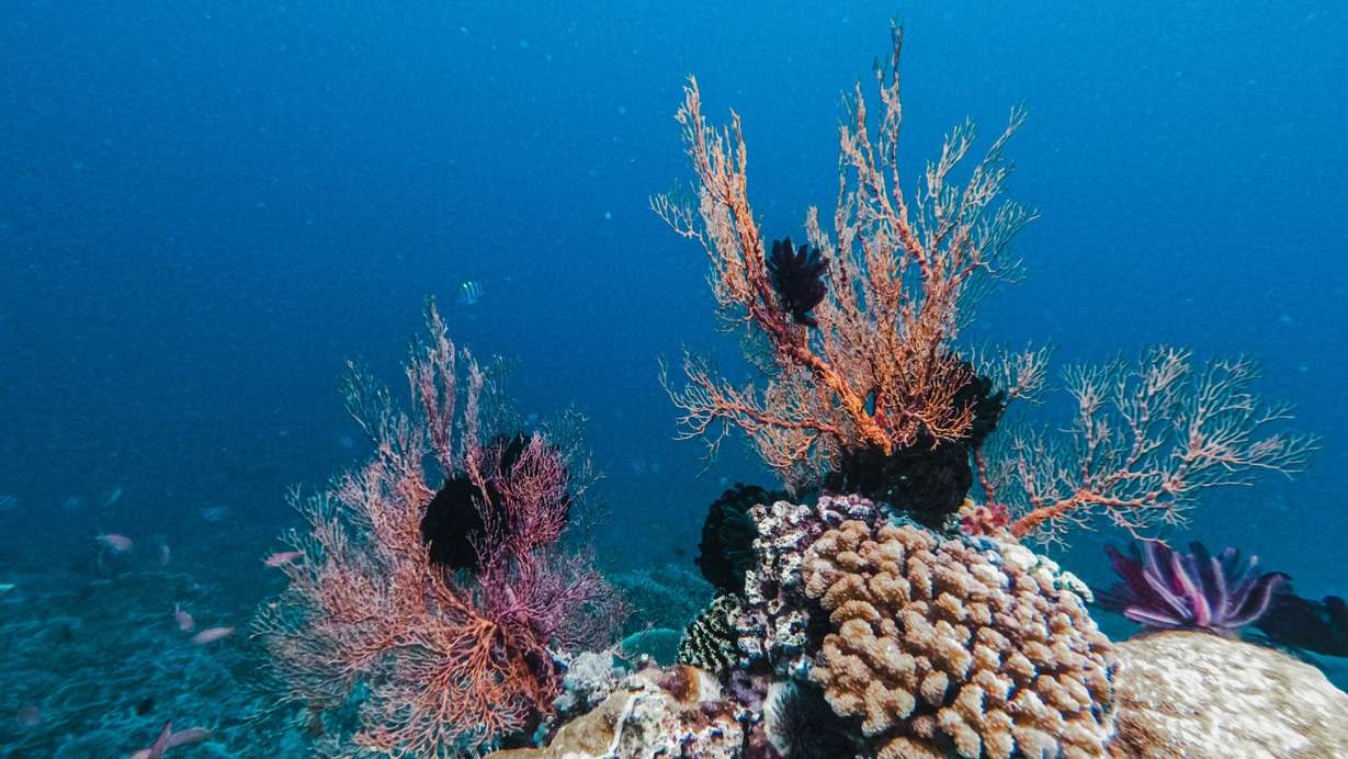 Komodo. The park's rich marine life offers colorful coral reefs, majestic