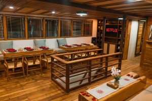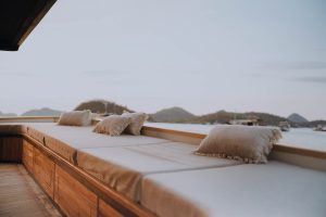 Elbark is a modern-built, boutique phinisi vessel available for private charters or sharing trips through the incredible waters and scenery of the Indonesian Archipelago. This custom-built phinisistyle yacht launched in October 2022. Carefully designed by experienced craftsmen, Elbark evokes Indonesian heritage with locally sourced wood and traditional boatbuilding methods. It is used as an expedition boat for small groups or families. Designed with an emphasis on space, privacy, and comfort, Elbark has 9 generous cabins spread across three decks, an intimate and cozy lounge and dining room, a spacious sky deck, and a sunbathing area on the main and upper deck. There are plenty of lounge areas for everyone to enjoy.