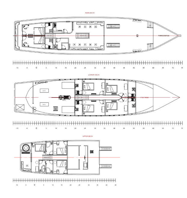 Life raft for 25 persons, Life Bouys, Fire Extinguisher, Flare Gun
